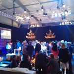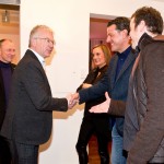 Bei Flammkuchen und Sekt entstanden erste Gespräche untereinander, einige wunderten sich allerdings über den etwas beengten Raum – doch dann die große Überraschung! Nach einem musikalischen Intro ging die Wand mit den GVO-Bilderrahmen nach oben und machte den Weg zum eigentlichen Veranstaltungsraum frei! WOW!